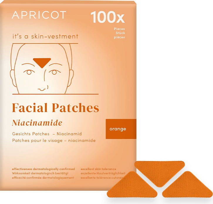 Os pensos faciais de niacinamida da APRICOT são ideais para o cuidado e o alisamento das rugas da testa nas peles hiperpigmentadas ou com poros dilatados. Podem ajudar a suavizar as rídulas e a minimizar os poros dilatados. Cada penso pode ser utilizado uma vez. São também ideais para utilização durante a noite.