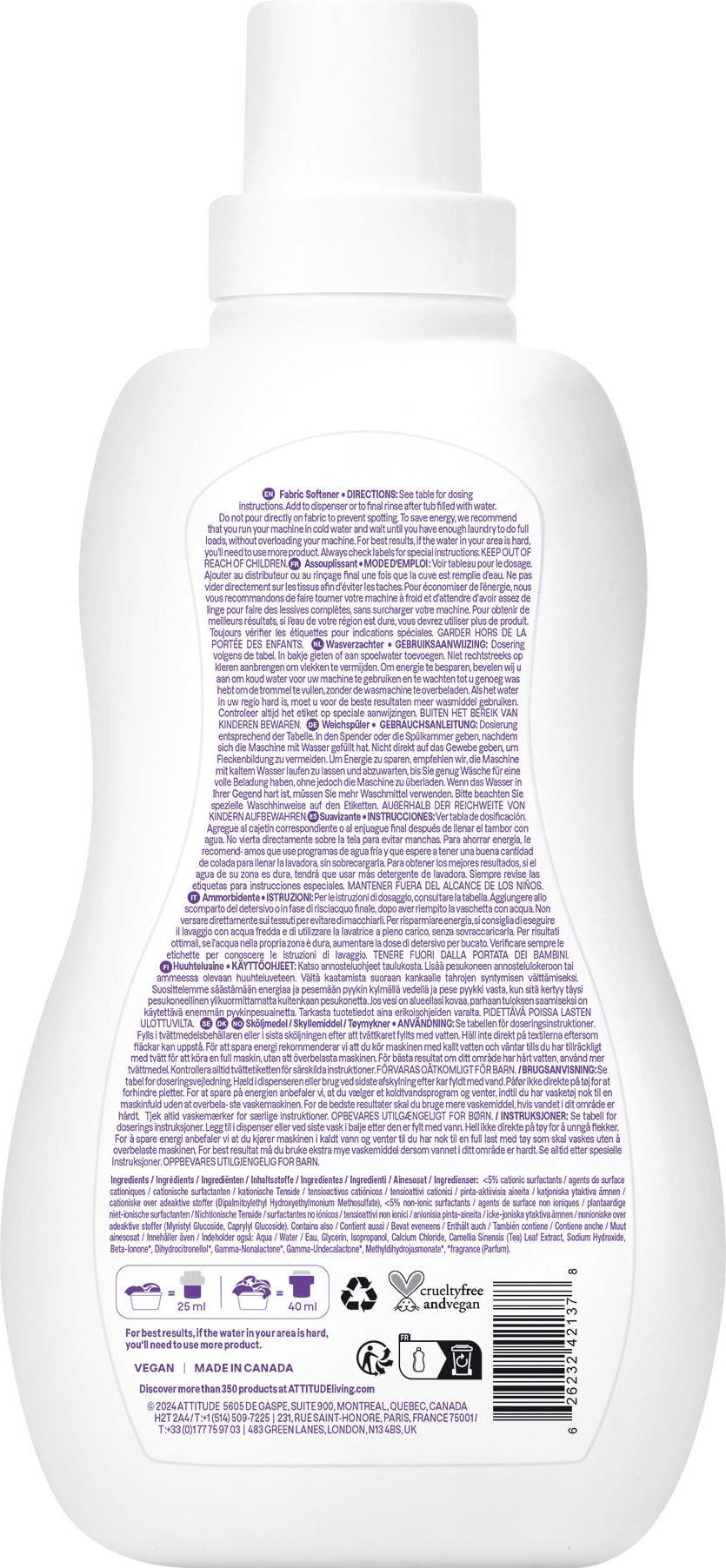 O amaciador natural da ATTITUDE deixa a roupa de bebé e de criança agradavelmente macia e com um perfume frutado-floral.