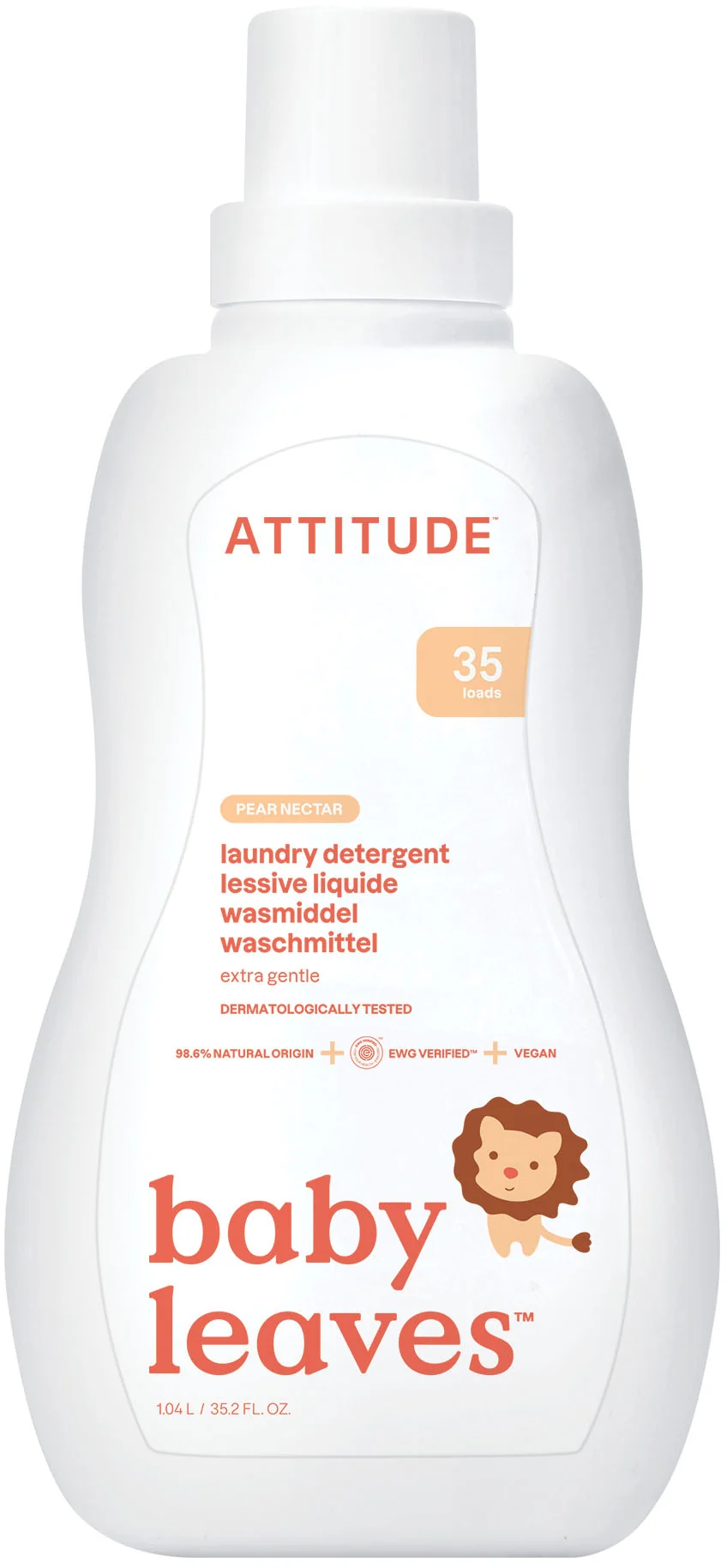 ATTITUDE Detergente Líquido Baby Leaves - Néctar de Pera, 1,05 l