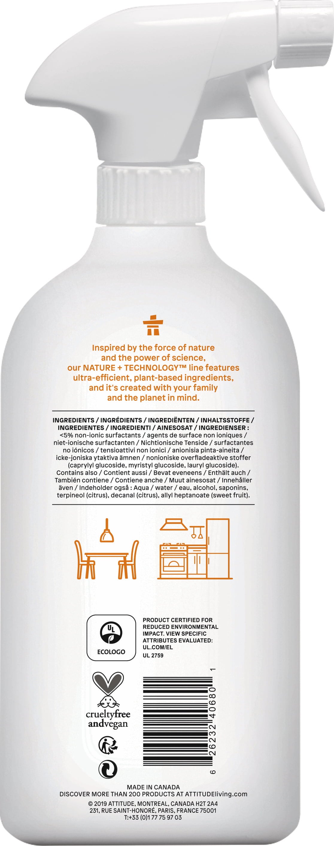 ATTITUDE Limpeza de Superfícies de Cozinha, 800 ml