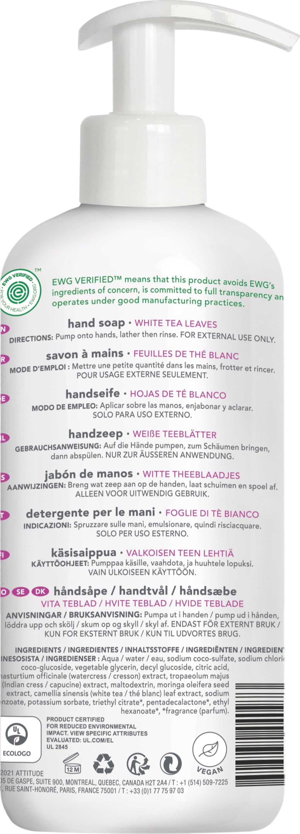 ATTITUDE Super Leaves - Sabão de Mãos Chá Branco, 473 ml