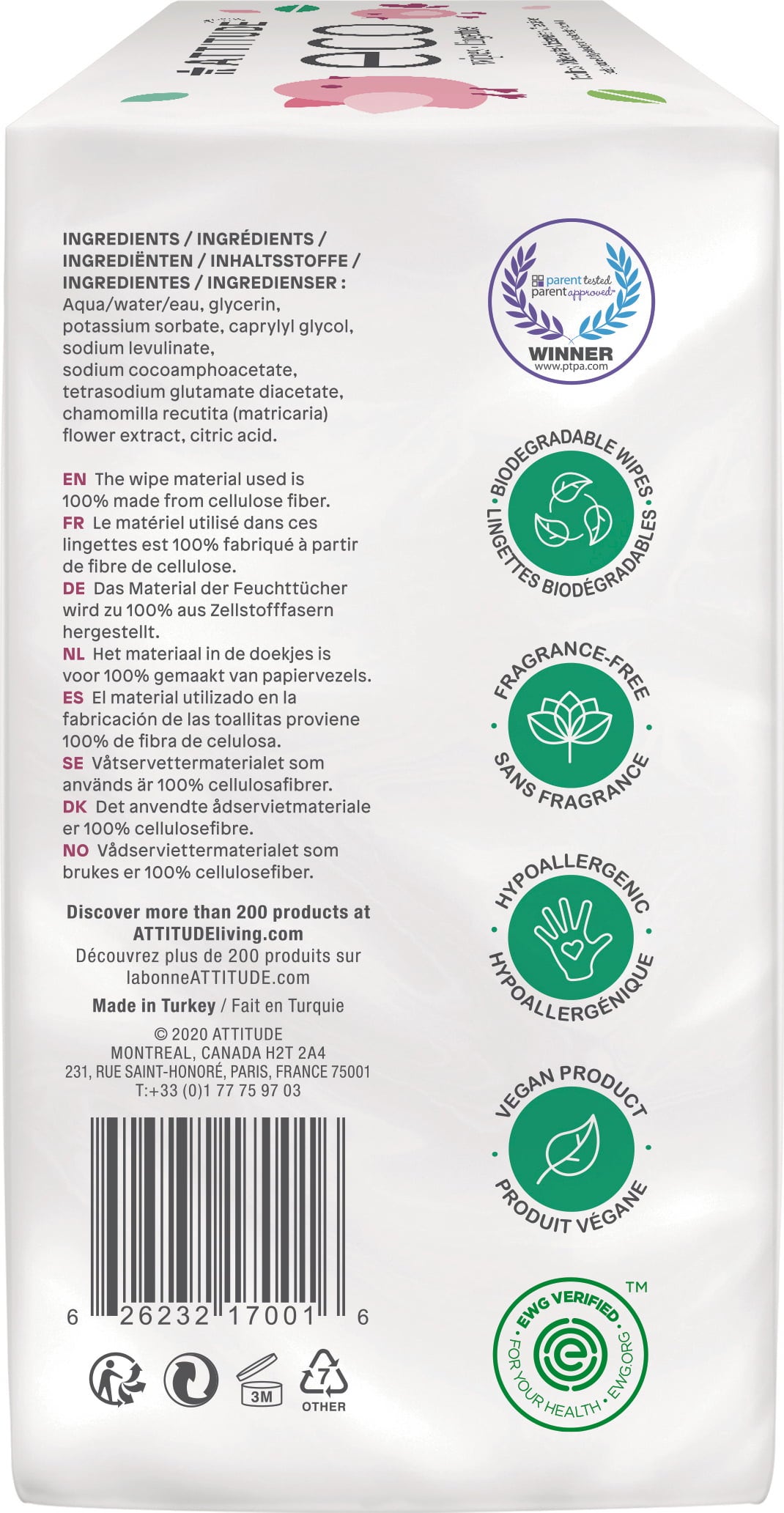 As toalhitas húmidas da Attitude são feitas de fibras de celulose biologicamente sustentáveis e não contêm perfume sintético. Têm uma compatibilidade cutânea muito boa e são totalmente biodegradáveis.