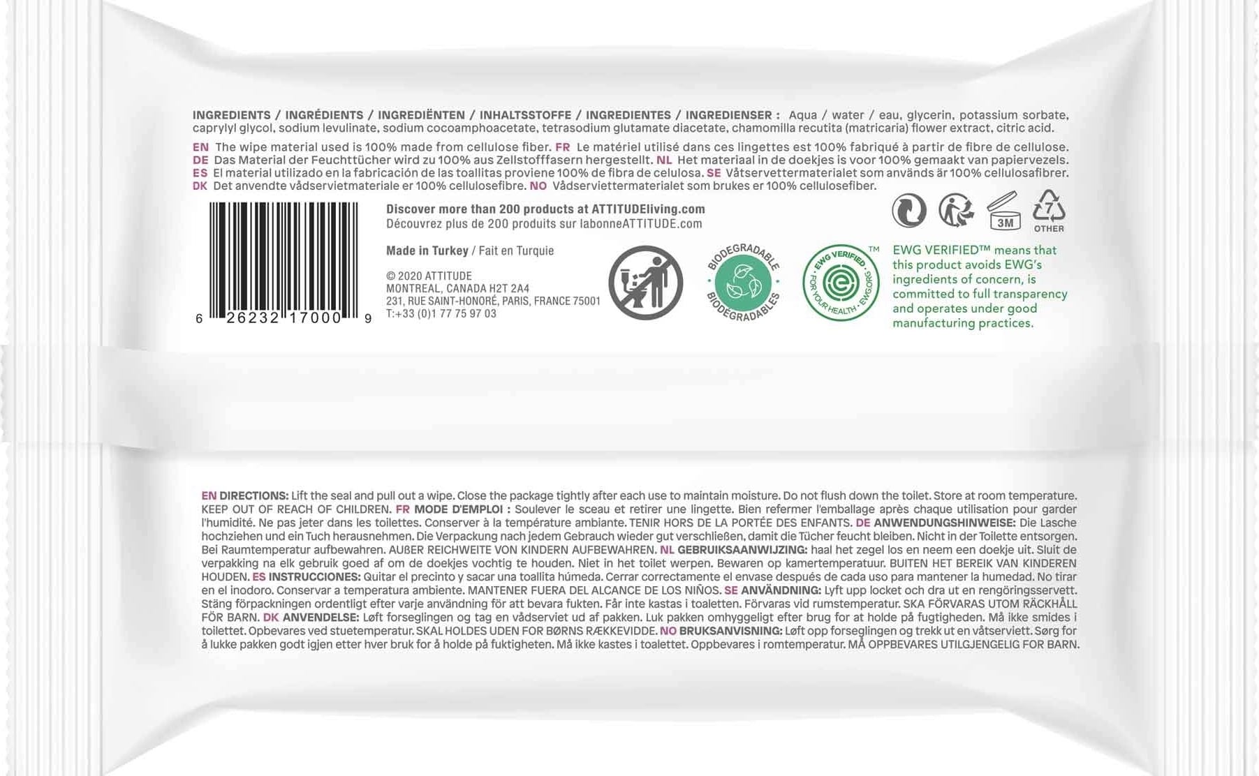 As toalhitas húmidas da Attitude são feitas de fibras de celulose biologicamente sustentáveis e não contêm fragrâncias sintéticas. Têm uma compatibilidade muito boa com a pele e são totalmente biodegradáveis.