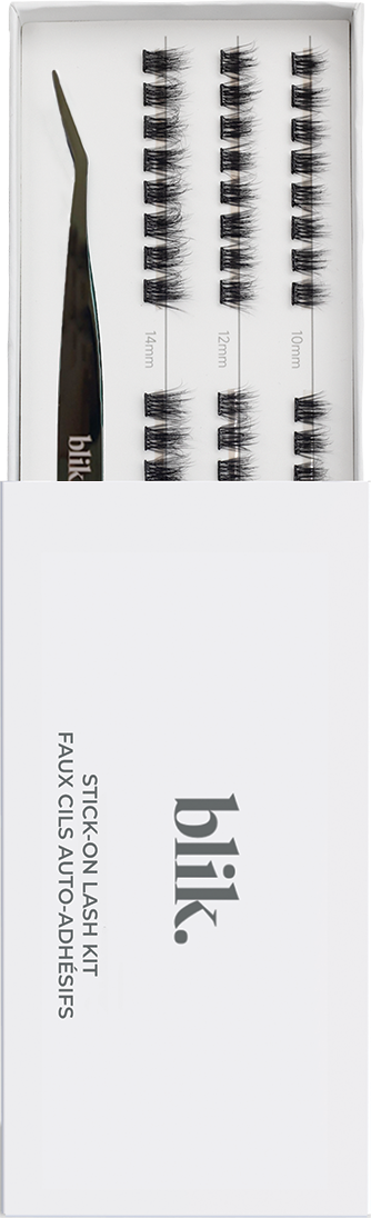 O Kit de Pestanas Stick-On Violette da blik. contém 48 grupos de pestanas autoadesivas nos tamanhos 10 mm, 12 mm e 14 mm. As pestanas são feitas de fibras vegetais e podem ser reutilizadas até 5 vezes. A embalagem inclui ainda um prático aplicador. Não é necessária cola de pestanas para a aplicação.