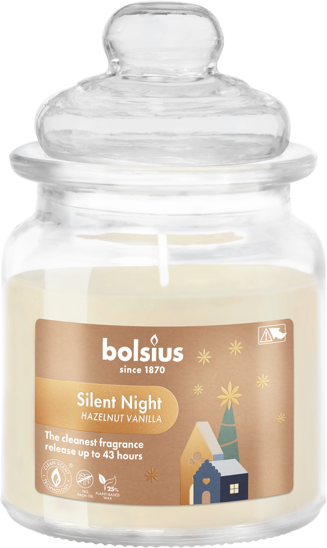 A vela perfumada Silent Night da Bolsius encanta com as suas notas aromáticas suaves de avelã, amêndoas torradas e baunilha. A fragrância quente e invernal cria numa questão de instantes uma atmosfera ideal de bem-estar na tua casa. A vela é enriquecida com extratos naturais, totalmente sem óleo de palma.