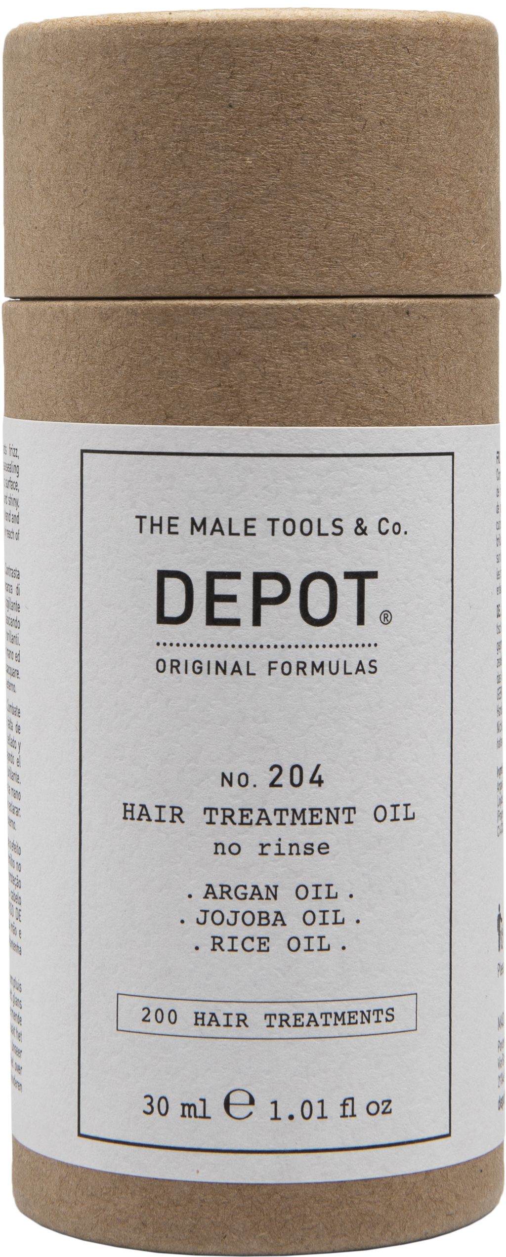 O Depot N° 204 Hair Treatment Óleo Capilar nutre o cabelo com uma mistura equilibrada de óleos de argão, arroz e jojoba. Funciona como um excelente cuidado leave-in e não necessita de enxaguamento.