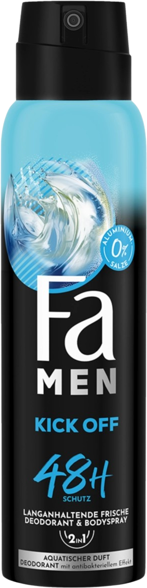 O spray desodorizante Fa Men Xtra Cool mantém a pele fresca e oferece proteção duradoura nas axilas. É livre de sais de alumínio e não deixa resíduos visíveis nas roupas.
