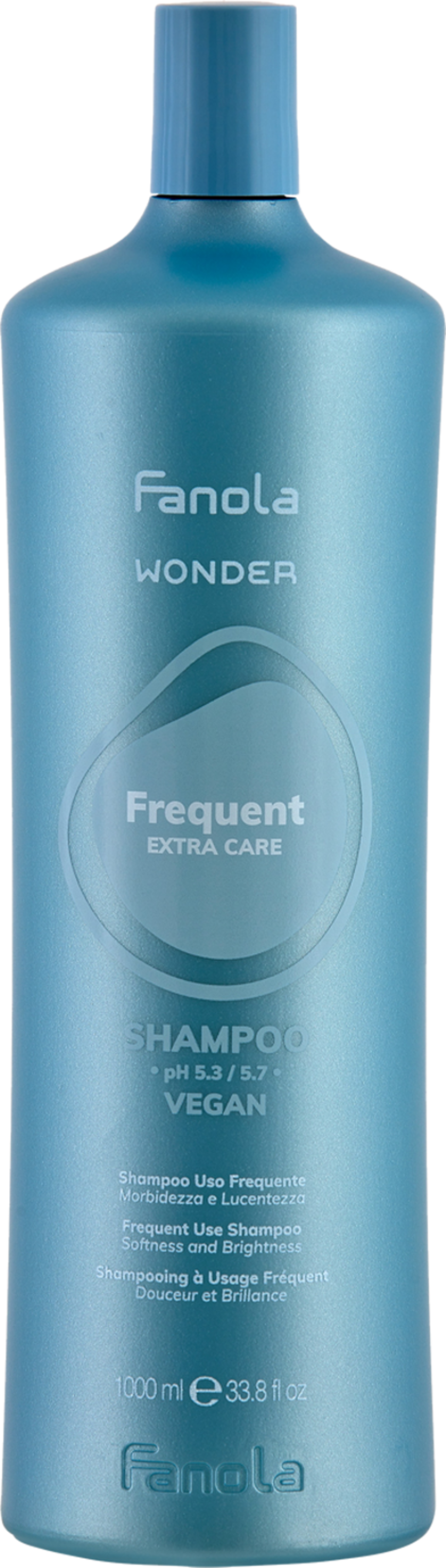 O WONDER Frequent Extra Care Shampoo da Fanola limpa o cabelo em profundidade e devolve-lhe de imediato novo brilho e uma suavidade agradável. Fórmula vegan e adequada para a lavagem diária do cabelo.