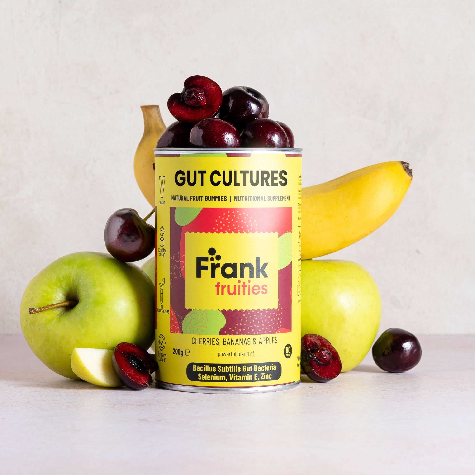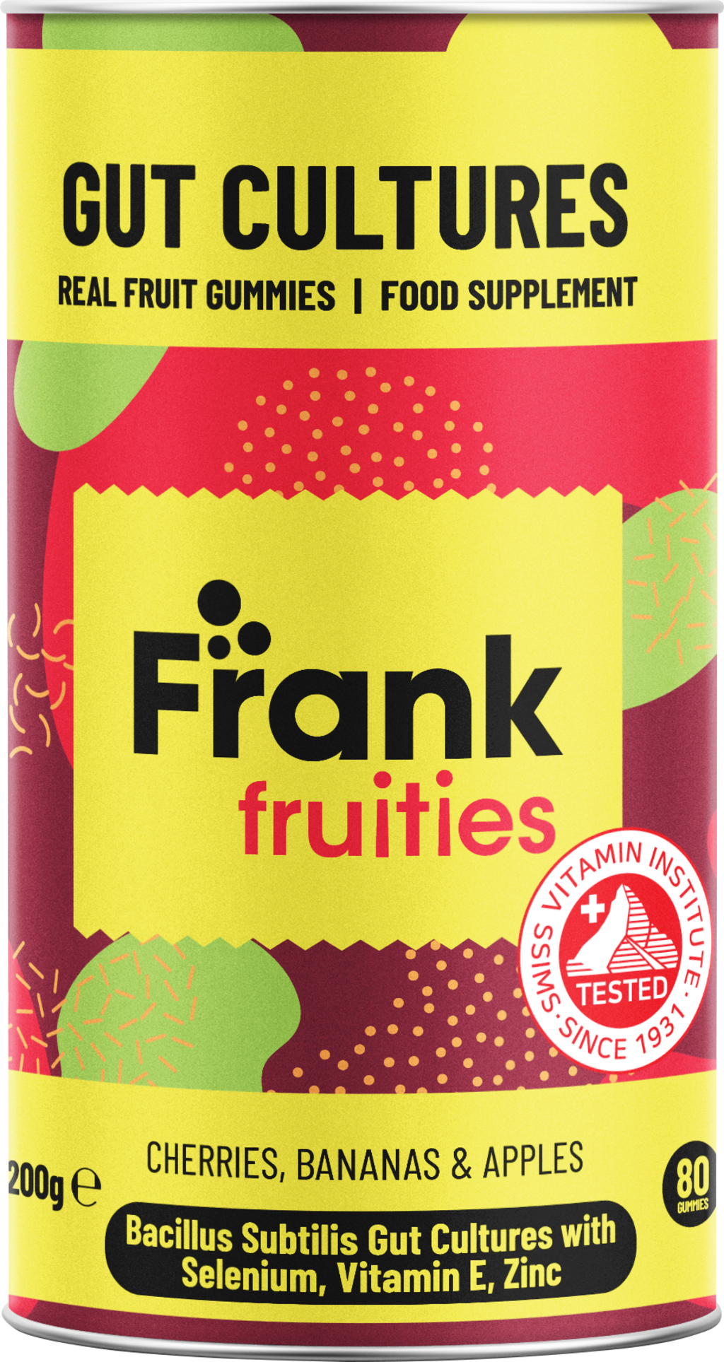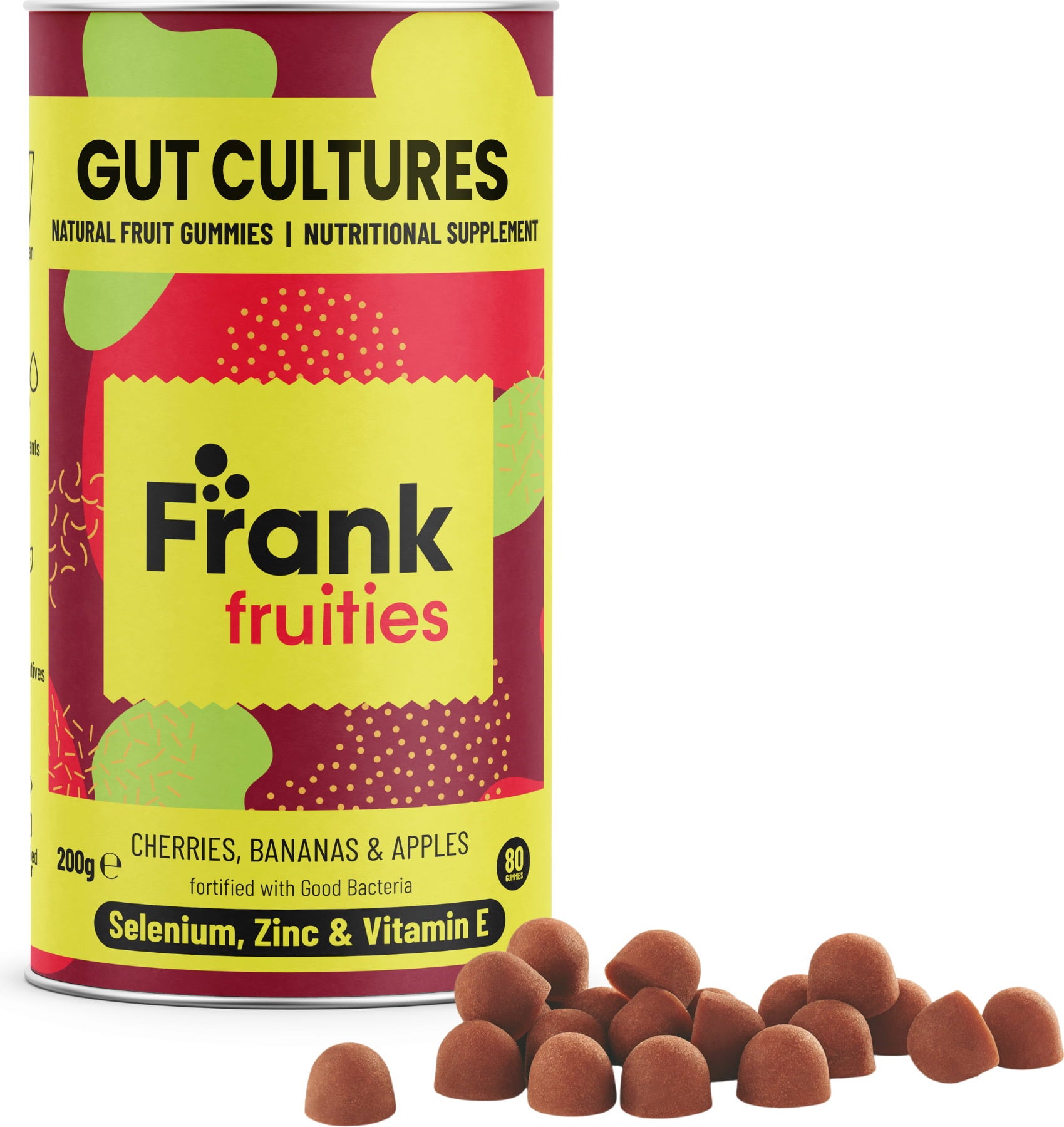 O Gut Cultures combina frutas naturais com selénio, vitamina E e zinco. Desfruta de um sabor intenso a cereja, banana e maçã – tudo isto sem adição de açúcar nem gelatina.