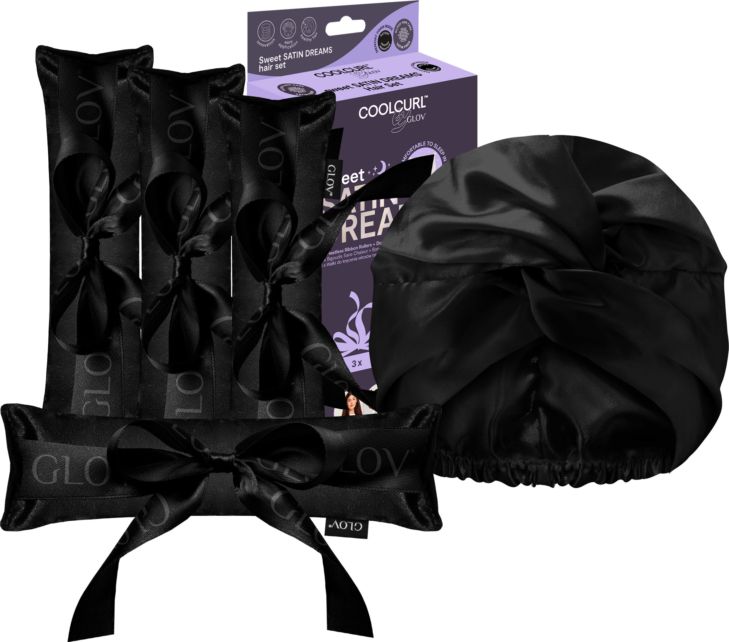GLOV COOLCURL Sweet Dreams Satin Set, Black