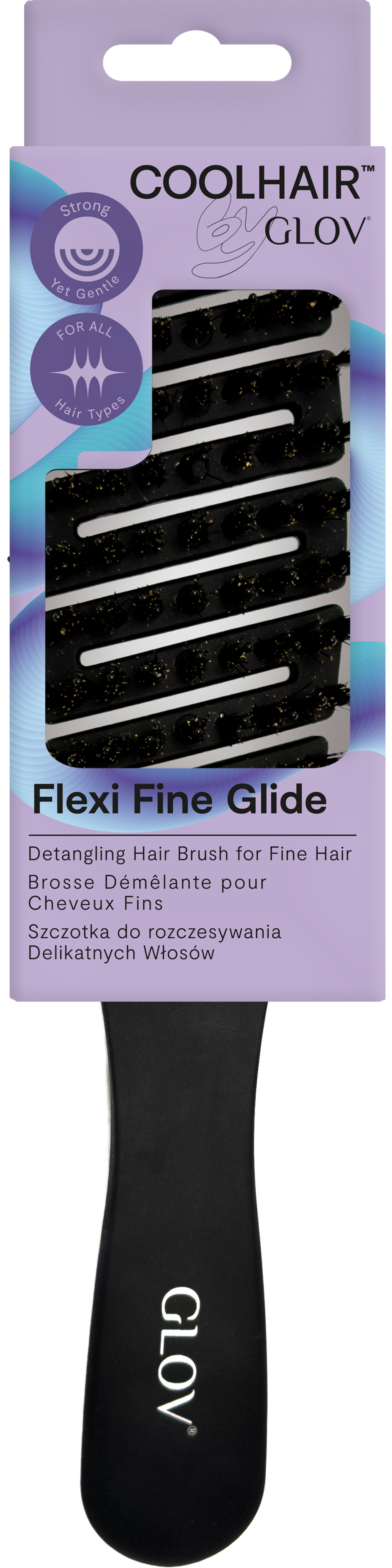 Graças à sua tecnologia inteligente de cerdas em serpentina, a Flexi Fine Glide Brush é a ferramenta ideal para desembaraçar ou pentear cabelos finos. Combina pinos firmes e filamentos macios para deslizar sem esforço através dos emaranhados, ao mesmo tempo que é suave para o cabelo e o couro cabeludo. A escova inovadora adapta-se a todos os movimentos para uma escovagem fácil e confortável, enquanto o cabo ergonómico garante uma aderência segura e confortável para um controlo total.