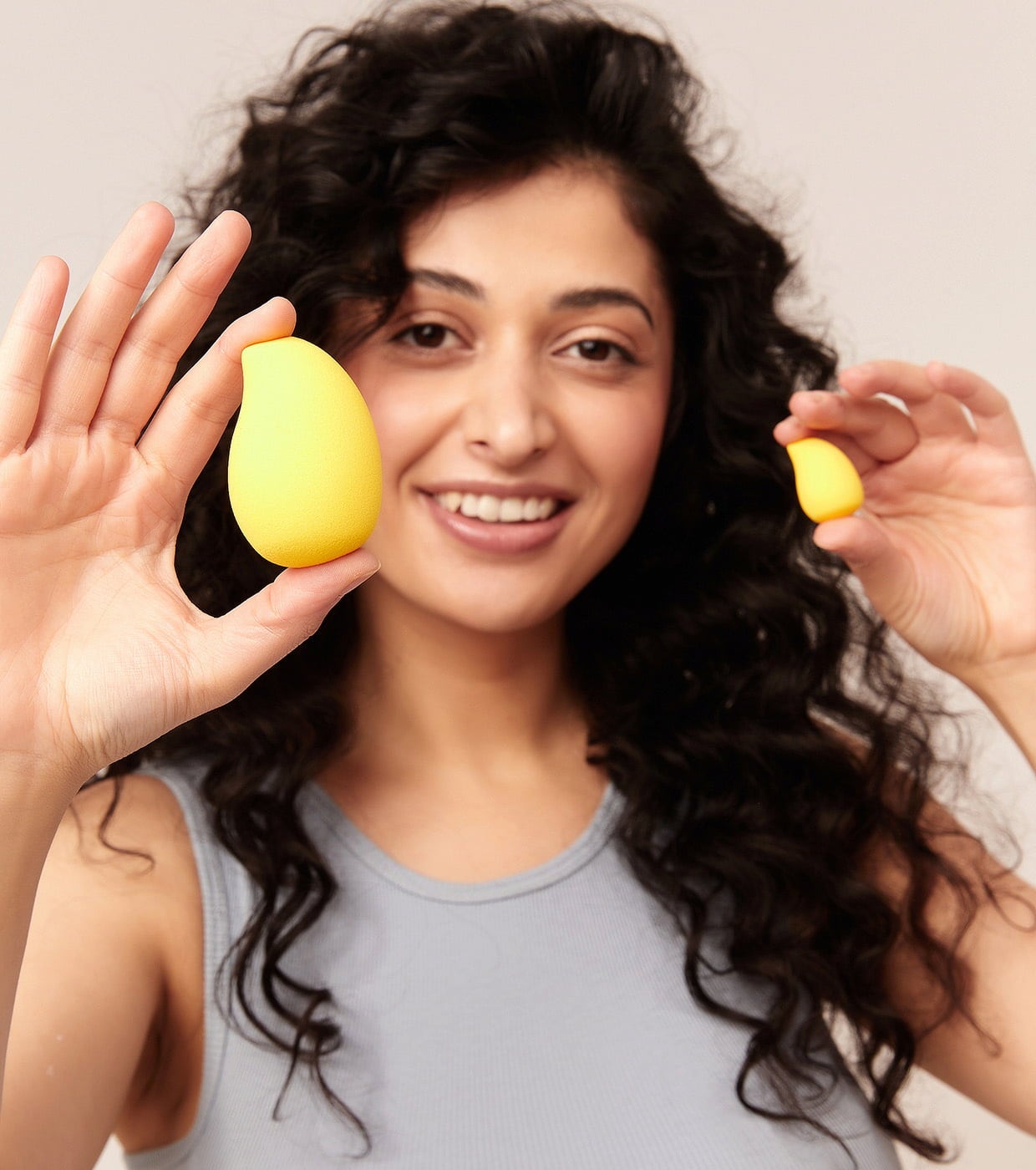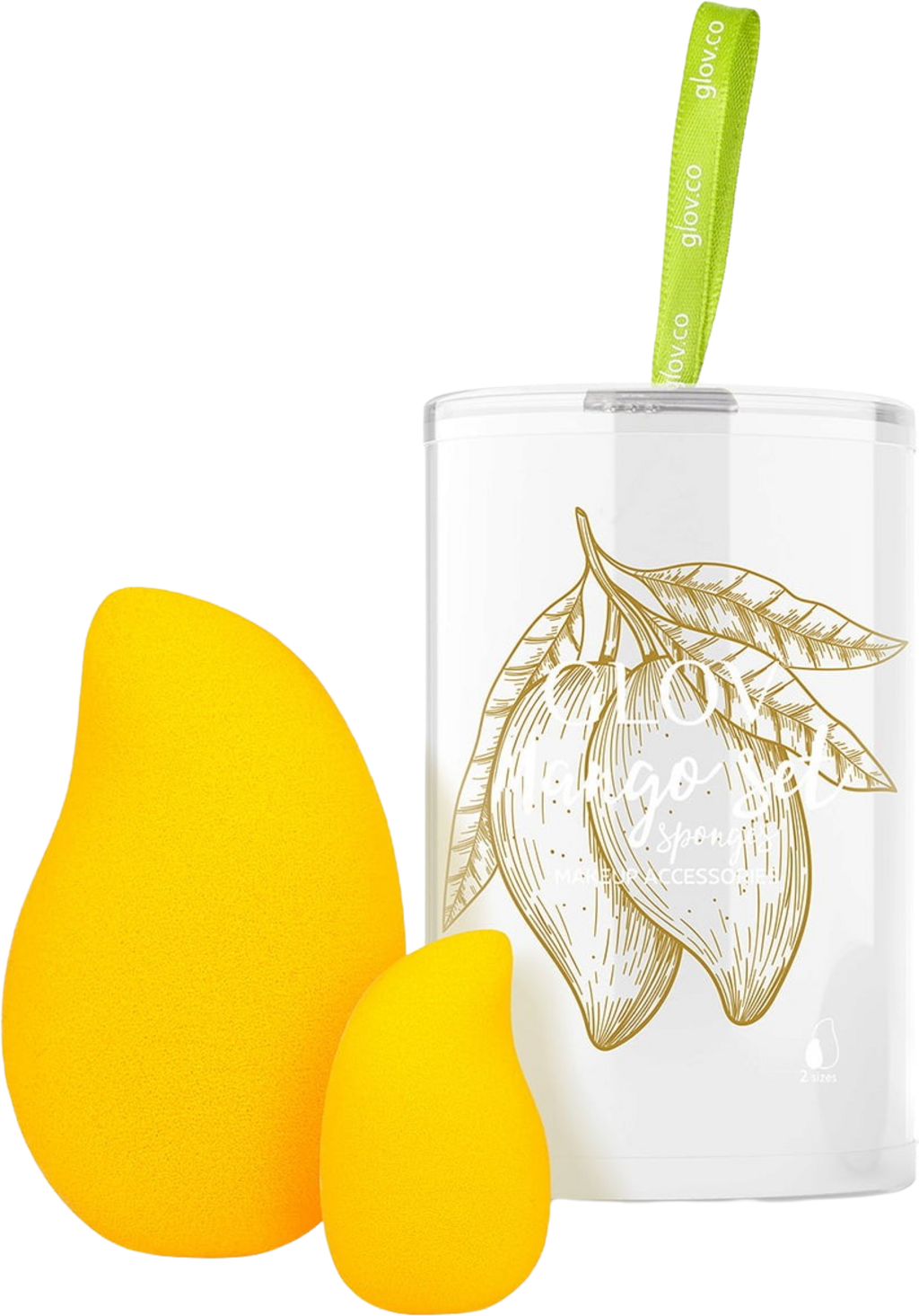 O conjunto de manga em duas peças da GLOV contém duas esponjas de maquilhagem em diferentes tamanhos. A esponja mais pequena foi desenvolvida para a aplicação precisa de cosméticos na zona dos olhos e em áreas que exigem maior detalhe. A esponja maior é perfeita para aplicar pó ou base no rosto e no decote.