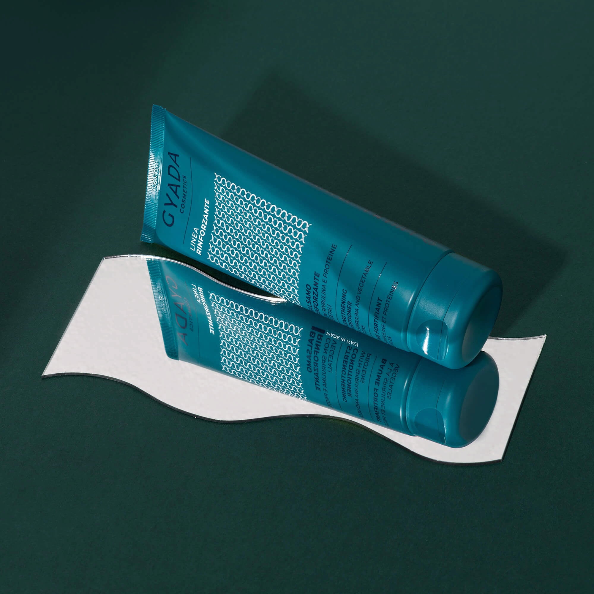 O bálsamo fortificante da GYADA Cosmetics reestrutura o cabelo quebradiço e com pontas espigadas, devolvendo-lhe o brilho. Possui ainda um efeito suavizante que ajuda a desembaraçar até o cabelo mais rebelde. O produto contém spirulina (algas marinhas ricas em sais minerais, vitaminas e aminoácidos), que atua em sinergia com ginseng, aveia e cavalinha. Além disso, os princípios ativos presentes, como aloe vera, proteínas de trigo e óleos vegetais, ajudam a formar uma película protetora natural sobre o cabelo, hidratando-o e nutrindo-o em profundidade.