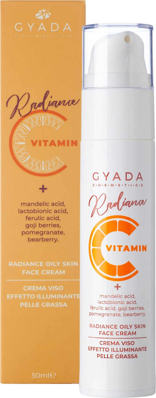 O creme facial equilibrante da linha Radiance da GYADA é ideal para pele oleosa e mista com tendência a impurezas. Graças à sua formulação com uma combinação de ingredientes ativos à base de vitamina C estabilizada, ácido mandélico, ácido lactobiónico e ácido ferúlico, promove uma esfoliação suave, remove o excesso de sebo e uniformiza o tom da pele. Além disso, o ácido glicirrizínico tem uma ação purificante, enquanto os oligoelementos essenciais estimulam a renovação celular e os extratos selecionados protegem a pele contra o stress oxidativo.