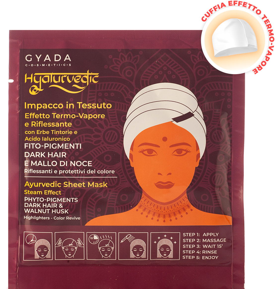 GYADA Cosmetics Máscara de Tecido Hyalurvedic para Brilho de Cor – Cabelos Escuros, 60 ml