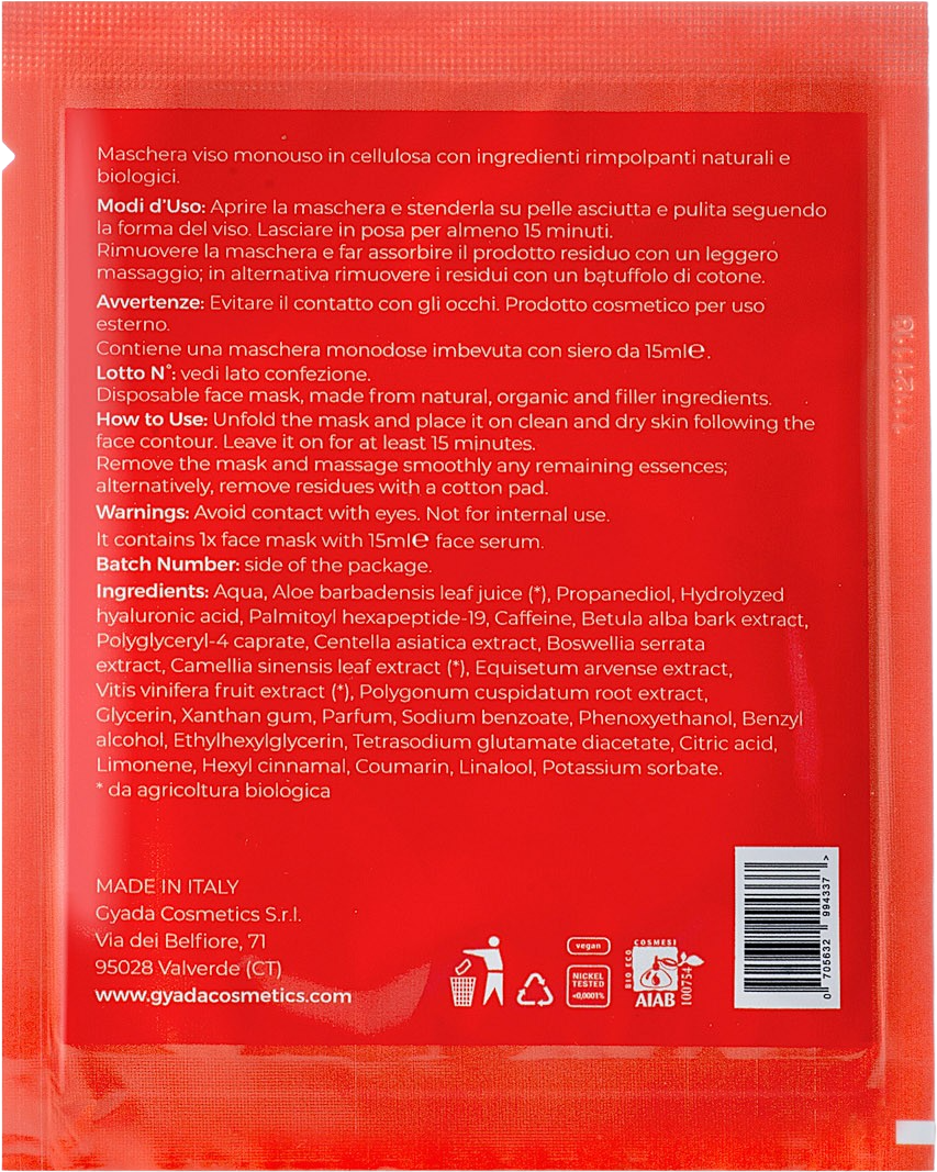 | Fabricante: | GYADA COSMETICS S.R.L., Via Dei Belfiore 71, 95028, Valverde (CT), Itália, info@gyadacosmetics.com, www.gyadacosmetics.com |