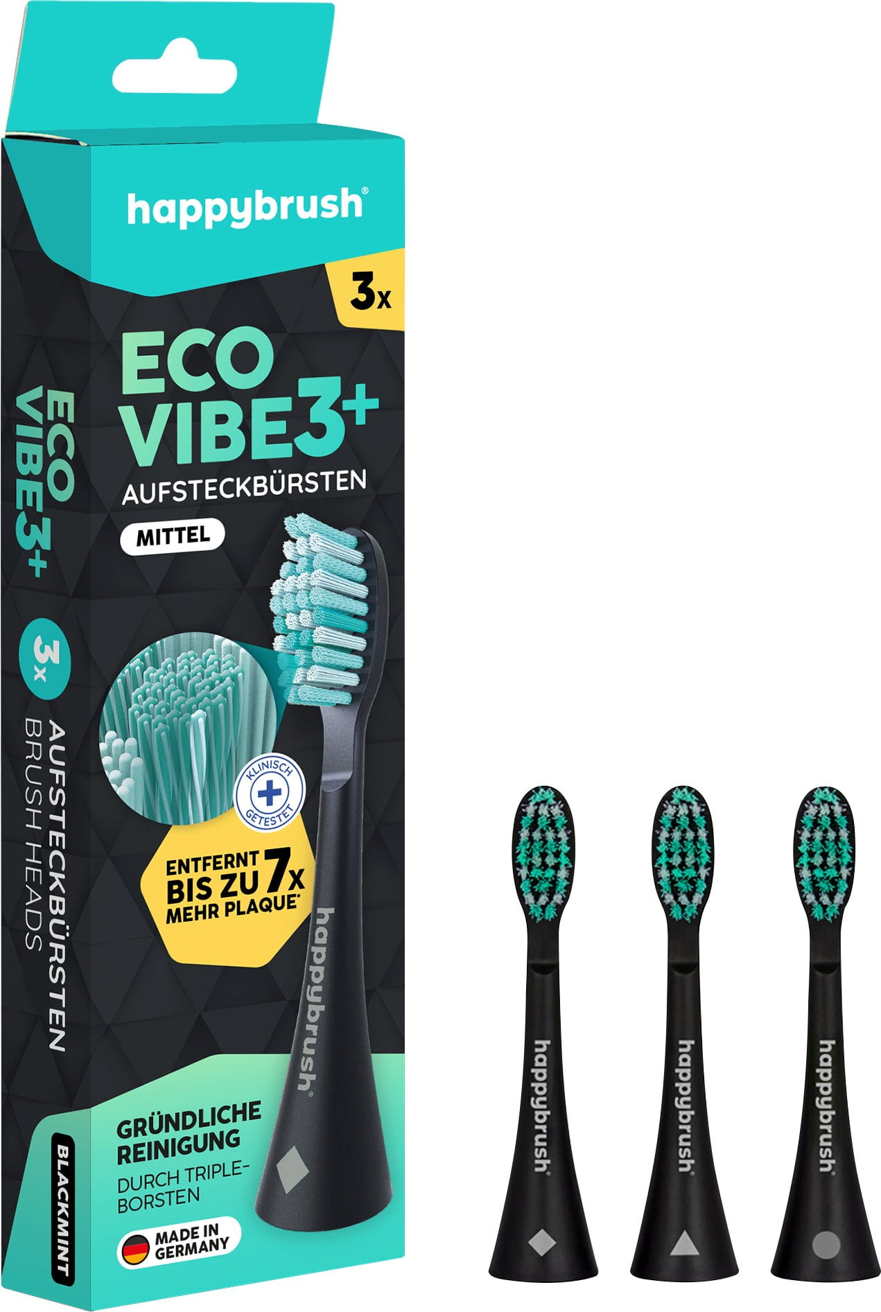 happybrush ECO VIBE 3+ Cabeças de Escova Preto-Menta