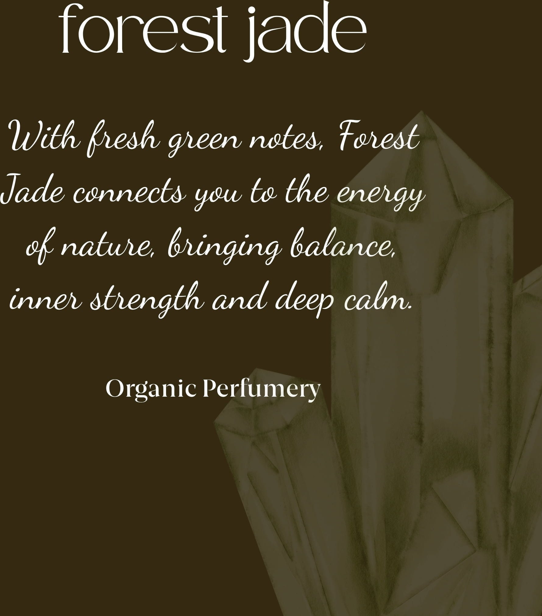 Com Forest Jade Organic Crystal Energy Perfume, desfrutas de uma fragrância profunda e herbal que cria uma ligação à terra. Inspirado no jade, este perfume natural transmite uma sensação de segurança, renovação e força interior. Ideal para te reconectares contigo.
