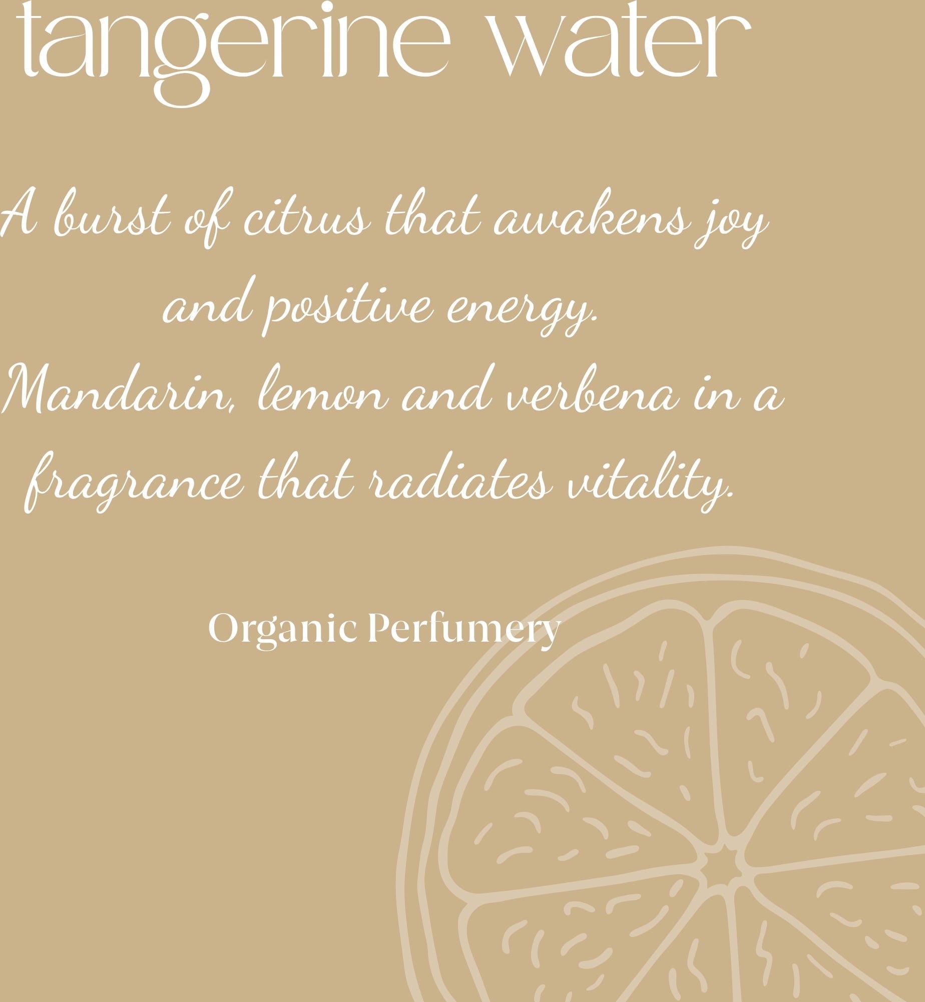 Tangerine Organic Fresh Fragrance é um convite para um passeio por um exuberante pomar de citrinos, onde as notas de limão se fundem com a doce frescura da tangerina. Oferece aromas alegres que evocam um luminoso dia no Mediterrâneo, ainda mais intensificados pela maceração de uma folha de tangerineira biológica na água de colónia.
