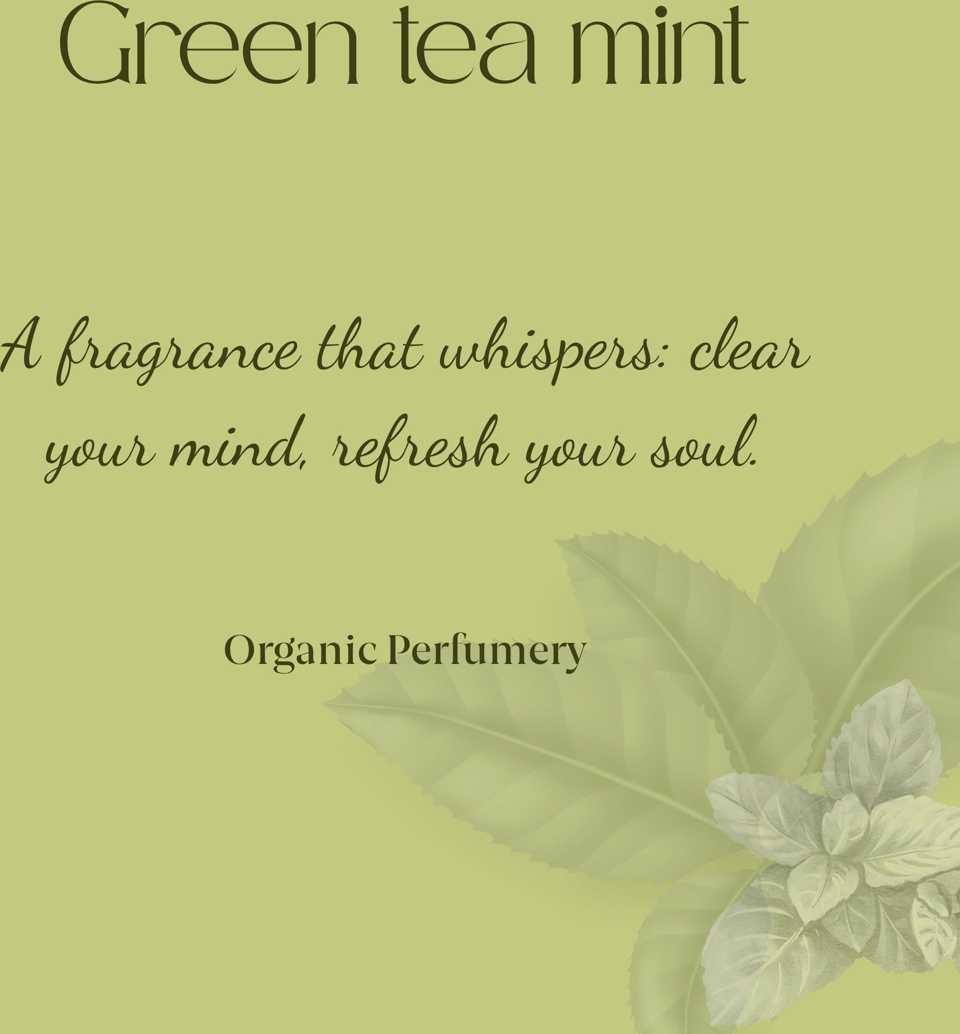 O perfume revigorante de Tea & Mint Organic Fresh Fragrance evoca a frescura do chá verde combinada com a menta fresca e ligeiramente ácida. É ideal para quem aprecia uma fragrância estimulante e energizante. O perfume artesanal foi macerado com menta biológica, conferindo-lhe uma nota ainda mais natural.