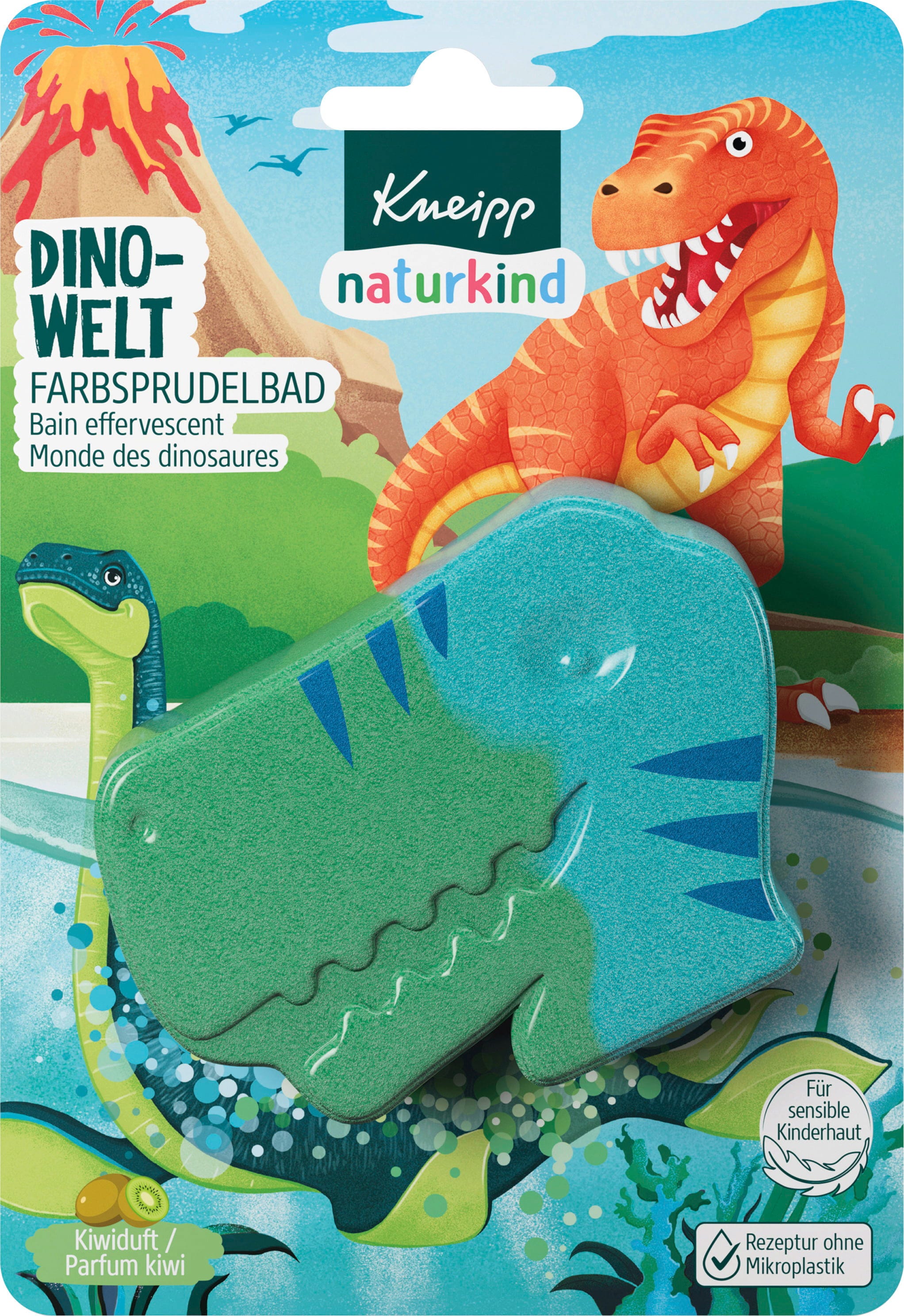 Este banho de espuma colorido da Kneipp leva o seu filho numa emocionante aventura de dinossauros. A bola de banho começa a borbulhar quando mergulhada em água quente e proporciona um banho colorido e divertido. Dá à água uma cor turquesa vibrante e exala uma fragrância frutada de kiwi.