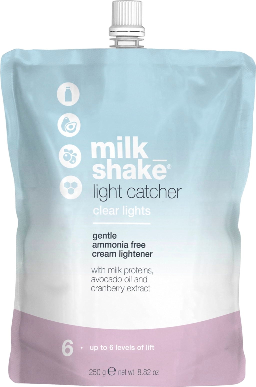 Light Catcher Clear Lights da milk_shake é um creme clareador suave que permite uma descoloração até 6 tons.