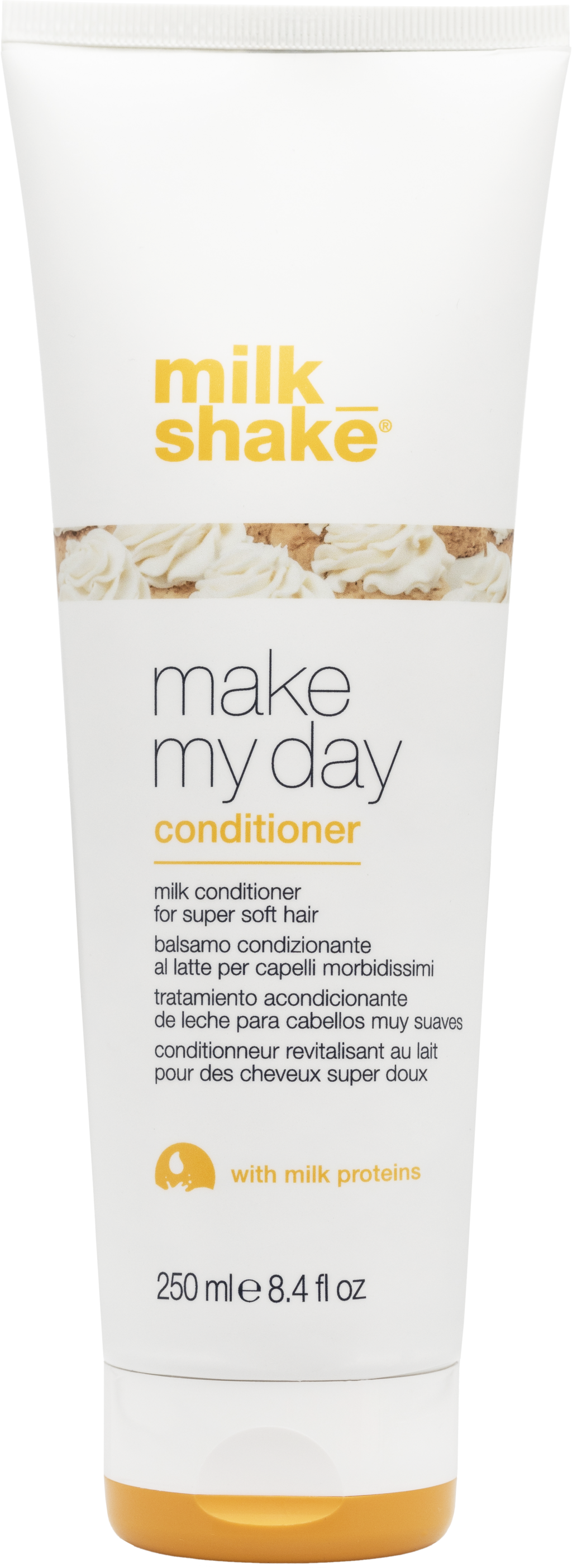 O Make My Day Conditioner da milk_shake cuida do cabelo com a sua textura cremosa de leite, sem o pesar. É enriquecido com valiosas proteínas de leite e extratos de morango, bagas de goji e framboesa. A sua fragrância agradável envolve e mima os teus sentidos.