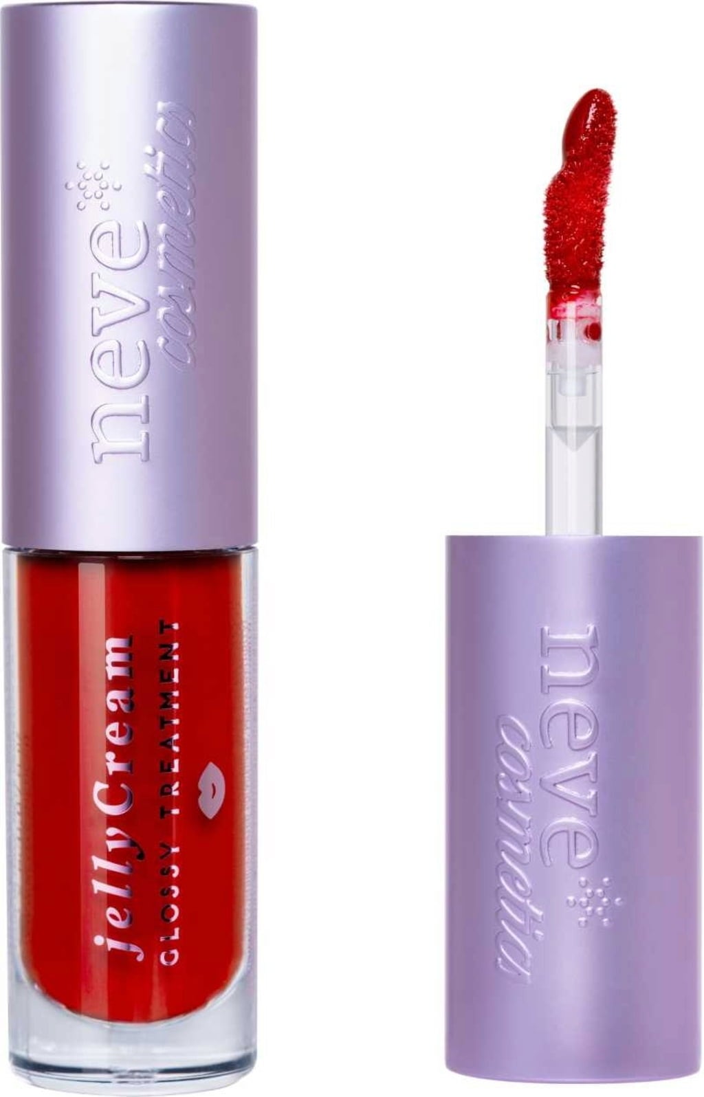 O Jelly Cream Glossy Treatment da Neve Cosmetics é um batom nutritivo e de longa duração com um acabamento brilhante. A fórmula é enriquecida com manteiga de manga, óleo de abacate, óleo de sementes de framboesa, extrato de flor de sabugueiro e vitamina E, entre outros ingredientes. Visualmente, o brilho labial proporciona um efeito ligeiramente preenchido.