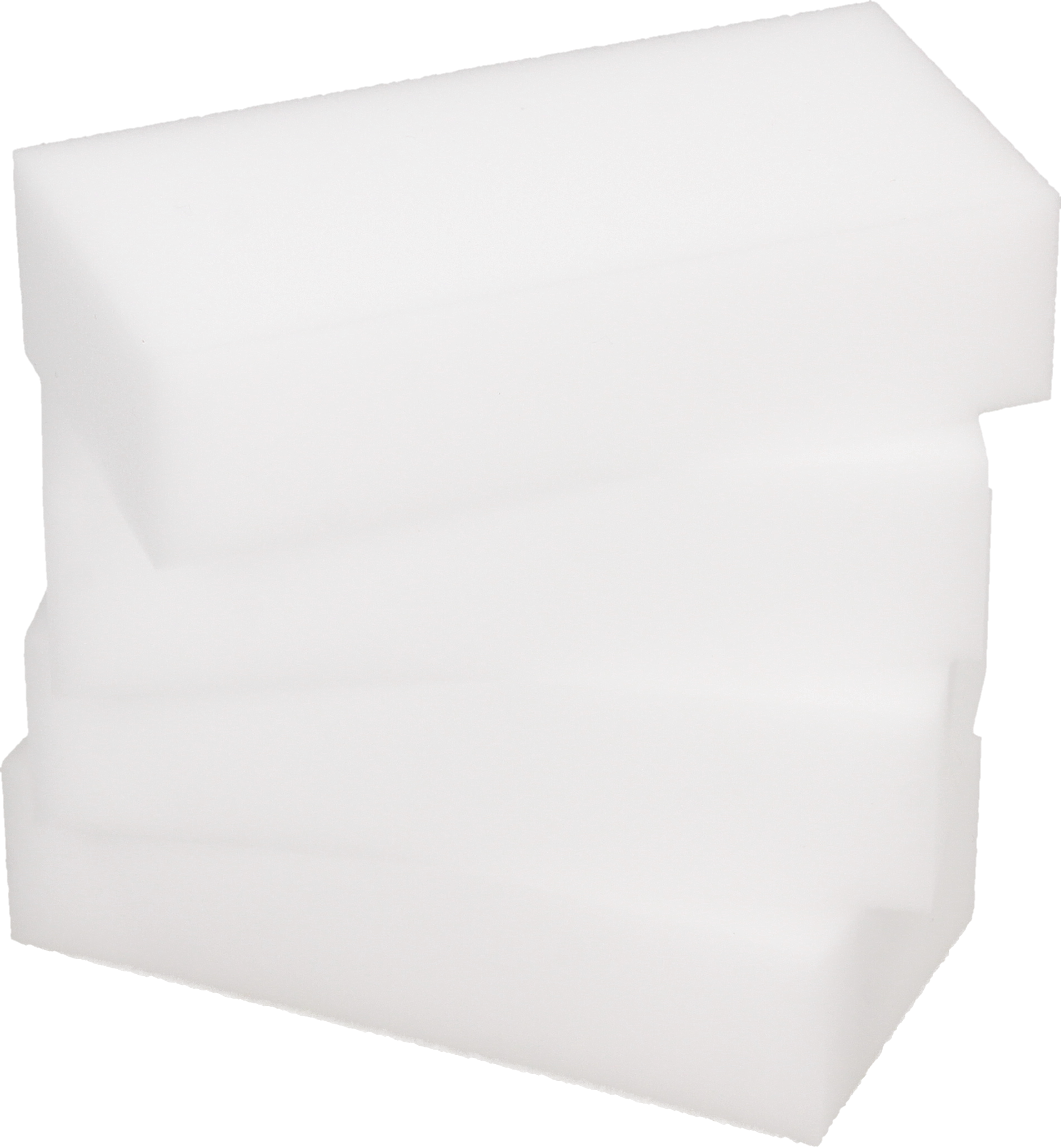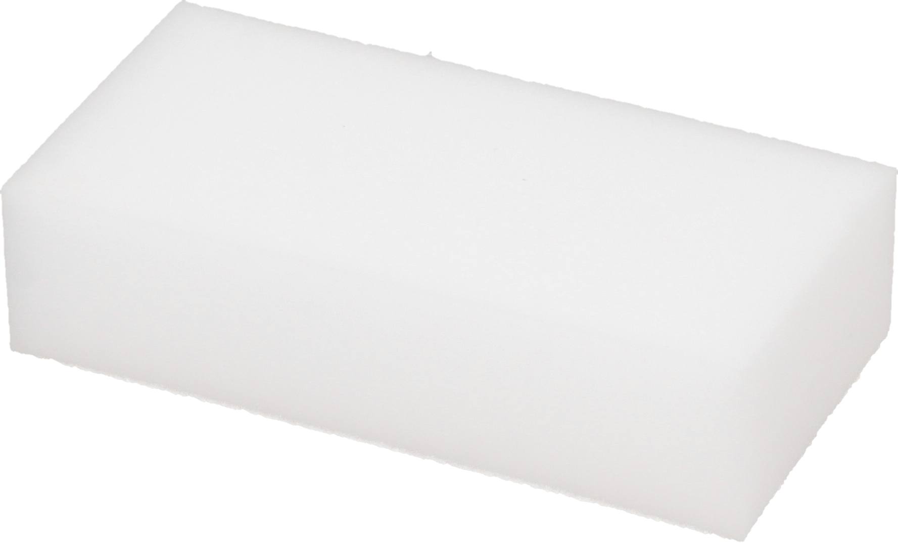 A esponja funciona como uma borracha: vai-se desgastando lentamente durante o uso e não deixa riscos – nem mesmo em superfícies sensíveis como paredes brancas, móveis ou sapatos. Para cantos difíceis, juntas ou zonas de difícil acesso, pode ser facilmente cortada.
