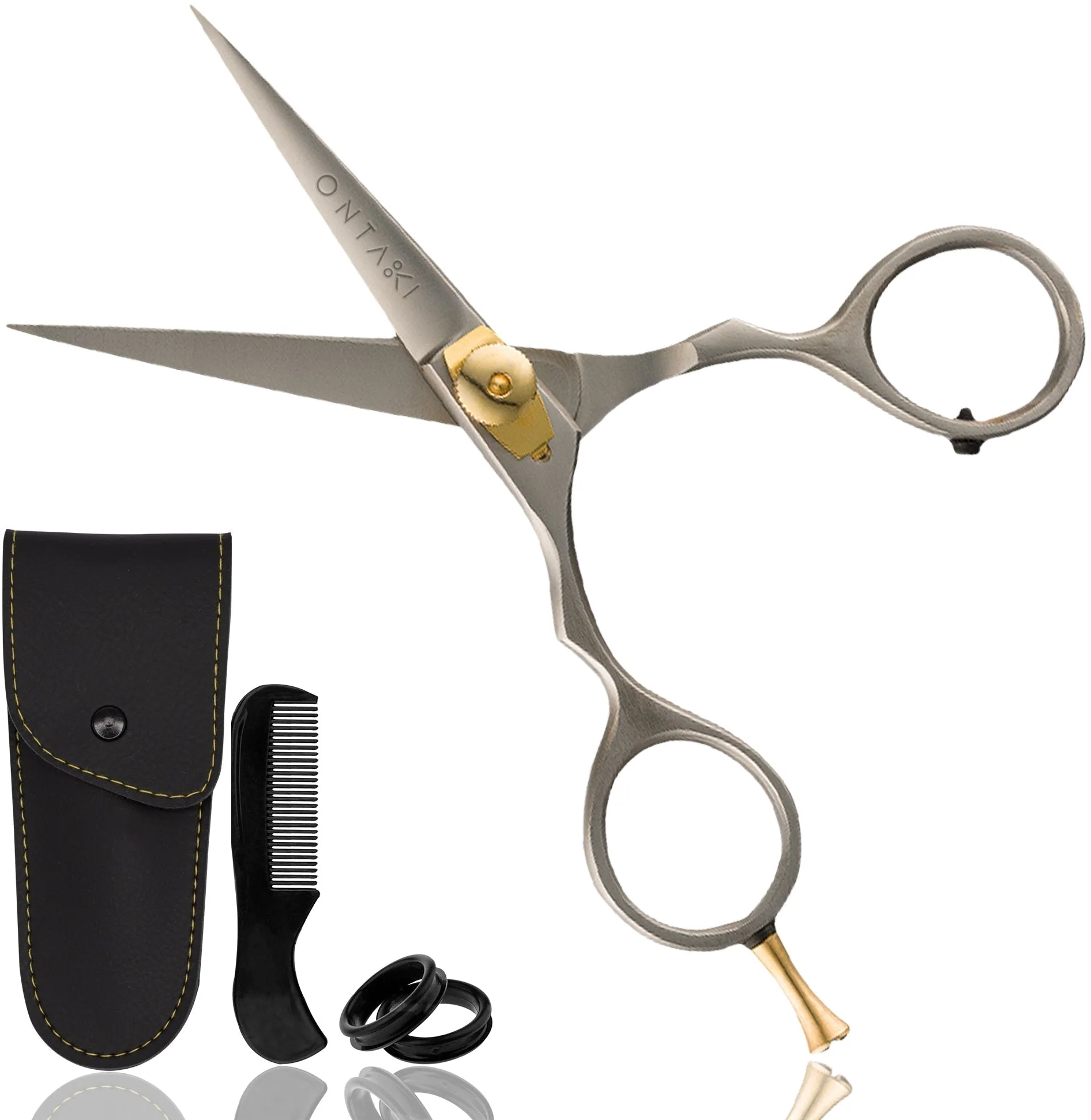 ONTAKI Premium Beard & Mustache Scissors - Japanese Steel - silver - 5.5 + comb & carrying pouch