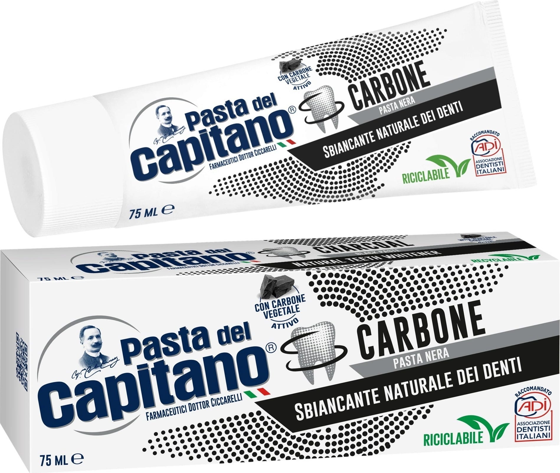 Pasta del Capitano Pasta de Dentes Carvão Vegetal, 75 ml
