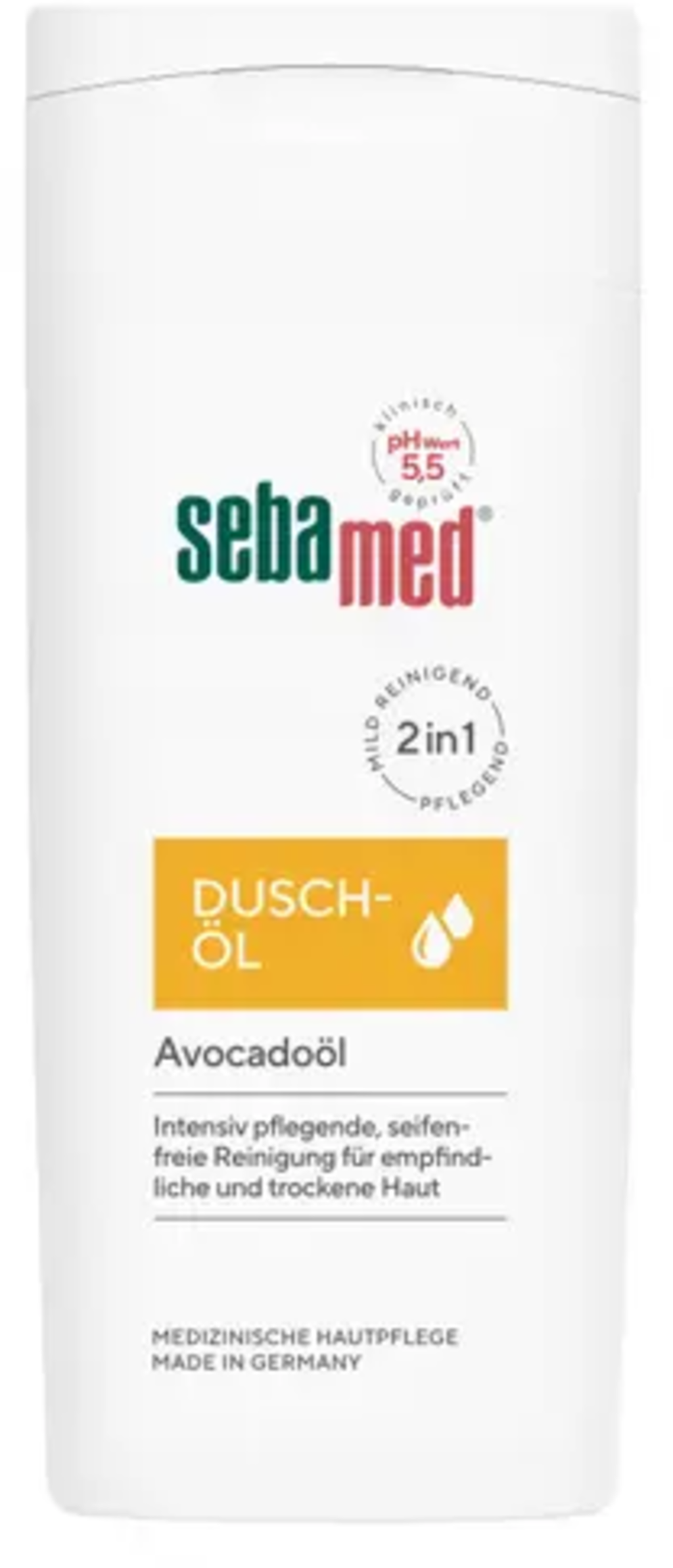 O óleo de duche é concebido com um complexo de alta qualidade com lecitina natural e óleo de abacate para mimar a pele particularmente sensível e seca com propriedades de cuidado intensivo. Os lípidos adicionados ajudam a preservar a camada de óleo e de humidade natural da pele. A emulsão levemente espumante dá até mesmo à pele muito seca uma sensação de suavidade acariciante.
