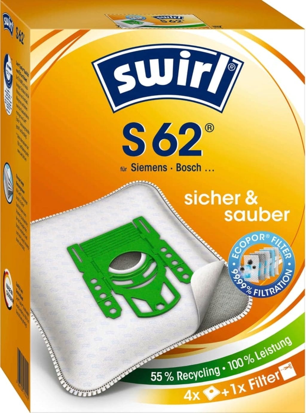Swirl® Saco de aspirador EcoPor® S 62, 4 Unidades