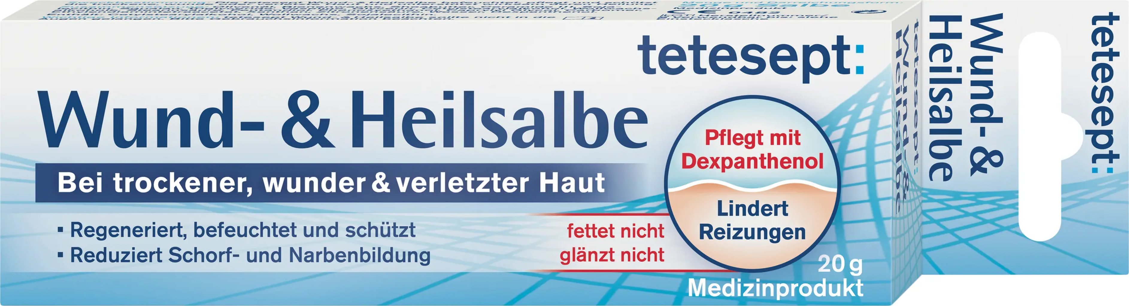 Esta pomada da tetesept cuida da pele seca e irritada graças à sua estrutura de membrana semelhante à da pele e ao dexpantenol. A pomada forma uma película protetora sobre a pele e apoia o seu processo natural de regeneração.