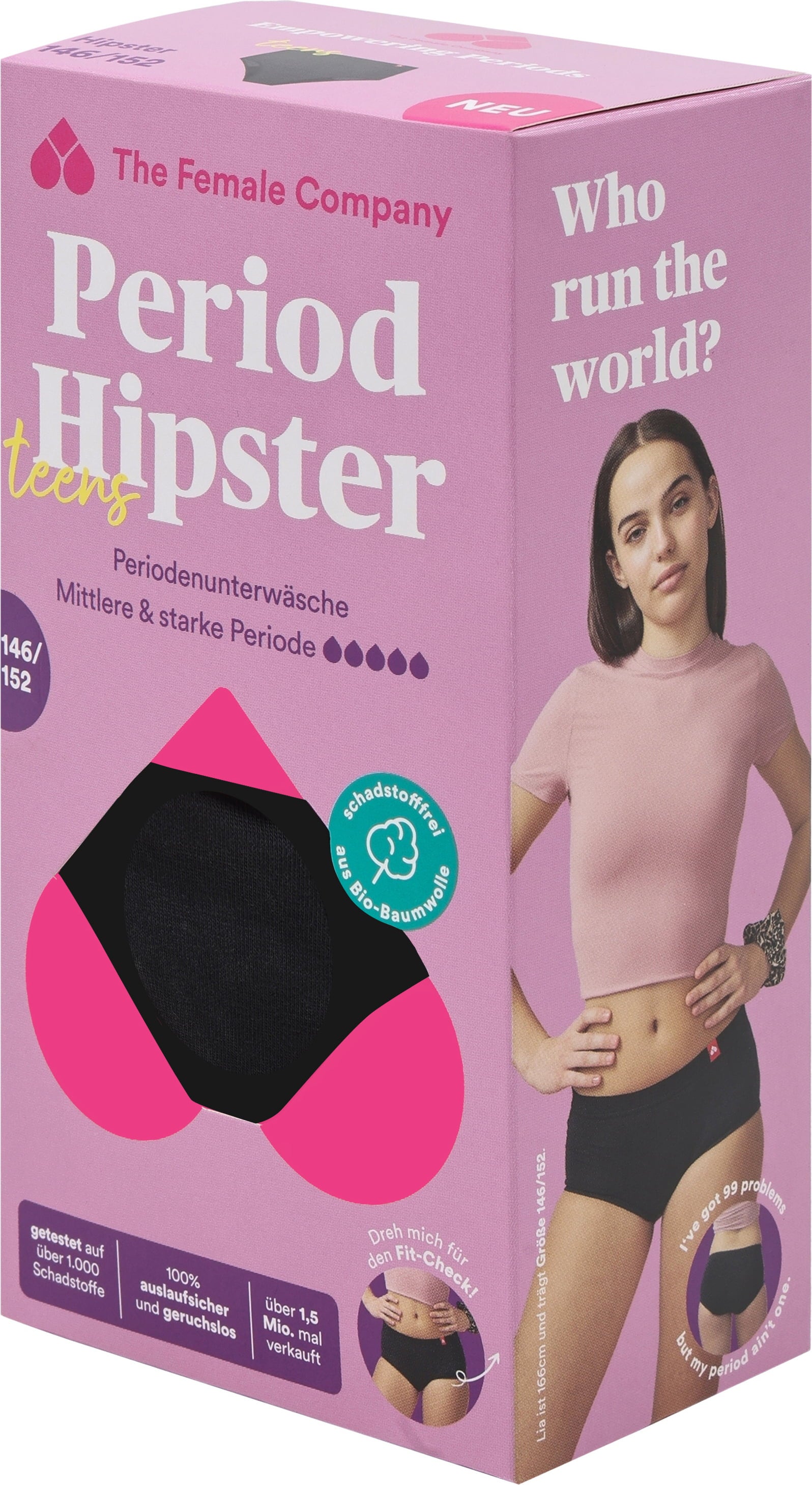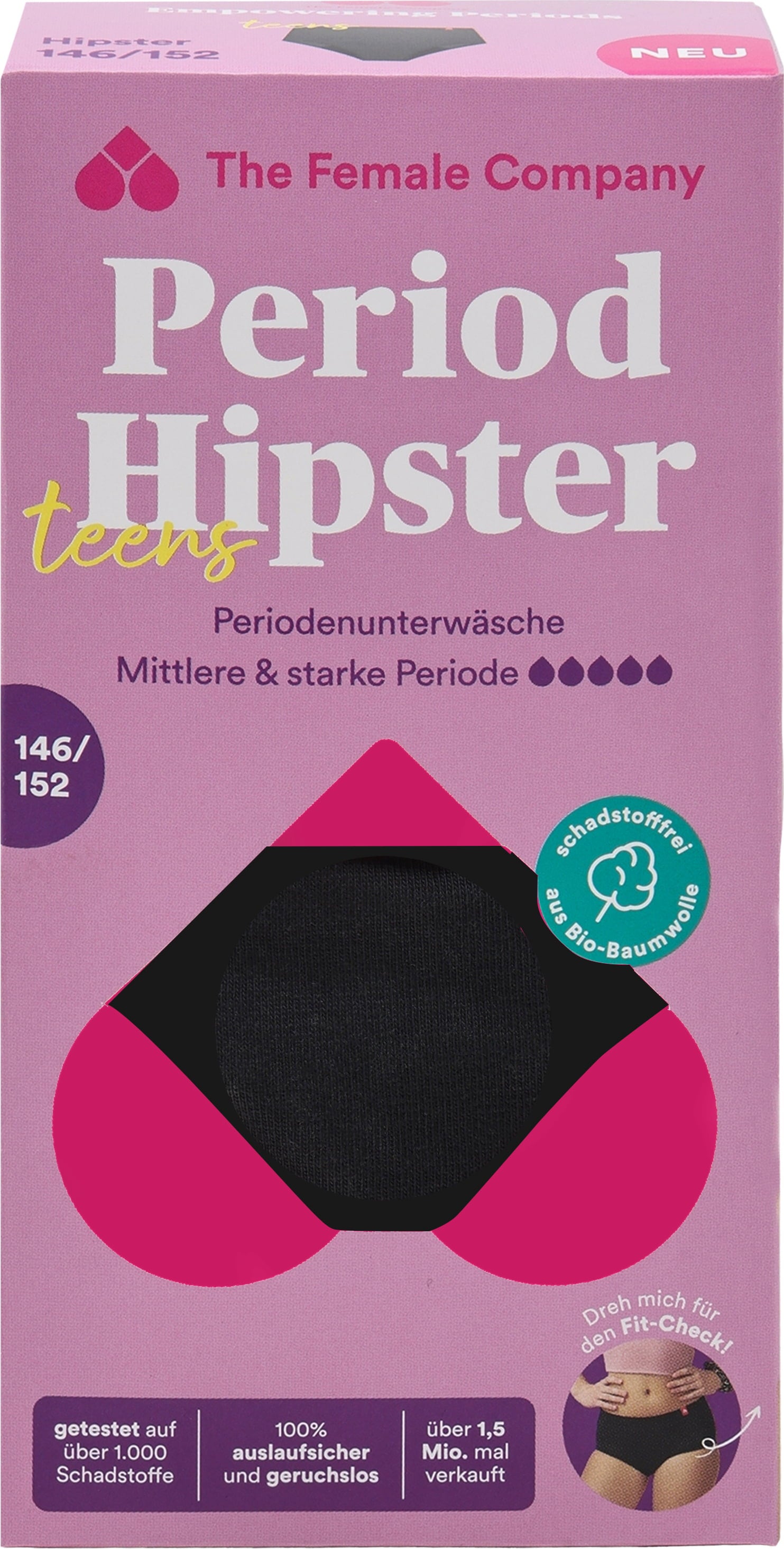 Esta roupa interior para o período foi especialmente concebida para as adolescentes. Tem o aspeto de uma roupa interior normal, é apenas 1 mm mais espessa do que a roupa interior normal, é particularmente absorvente e, por conseguinte, oferece o máximo conforto durante o período. Graças ao inovador processo de costura Fluid Protection®, evita as fugas laterais e garante a segurança.