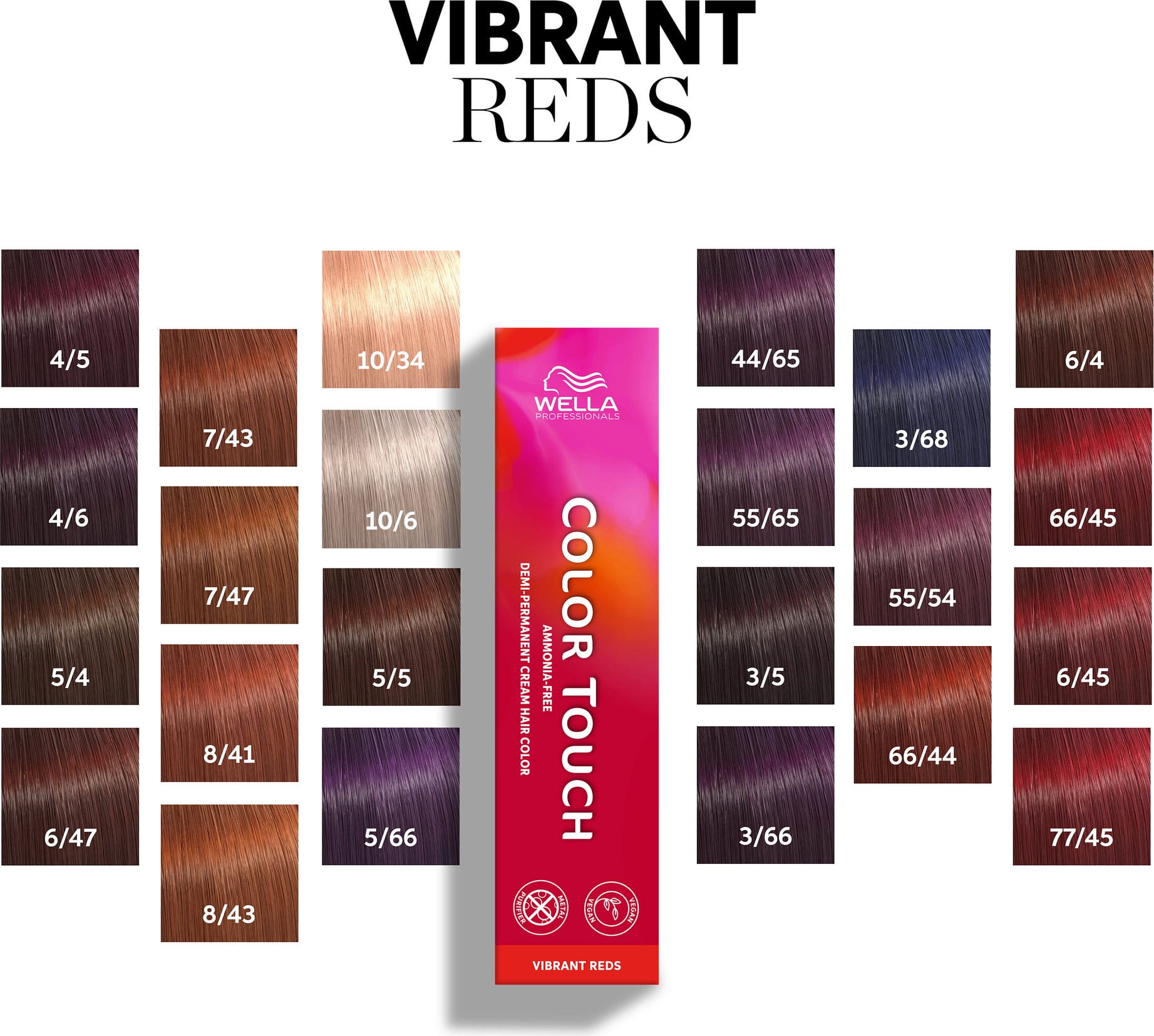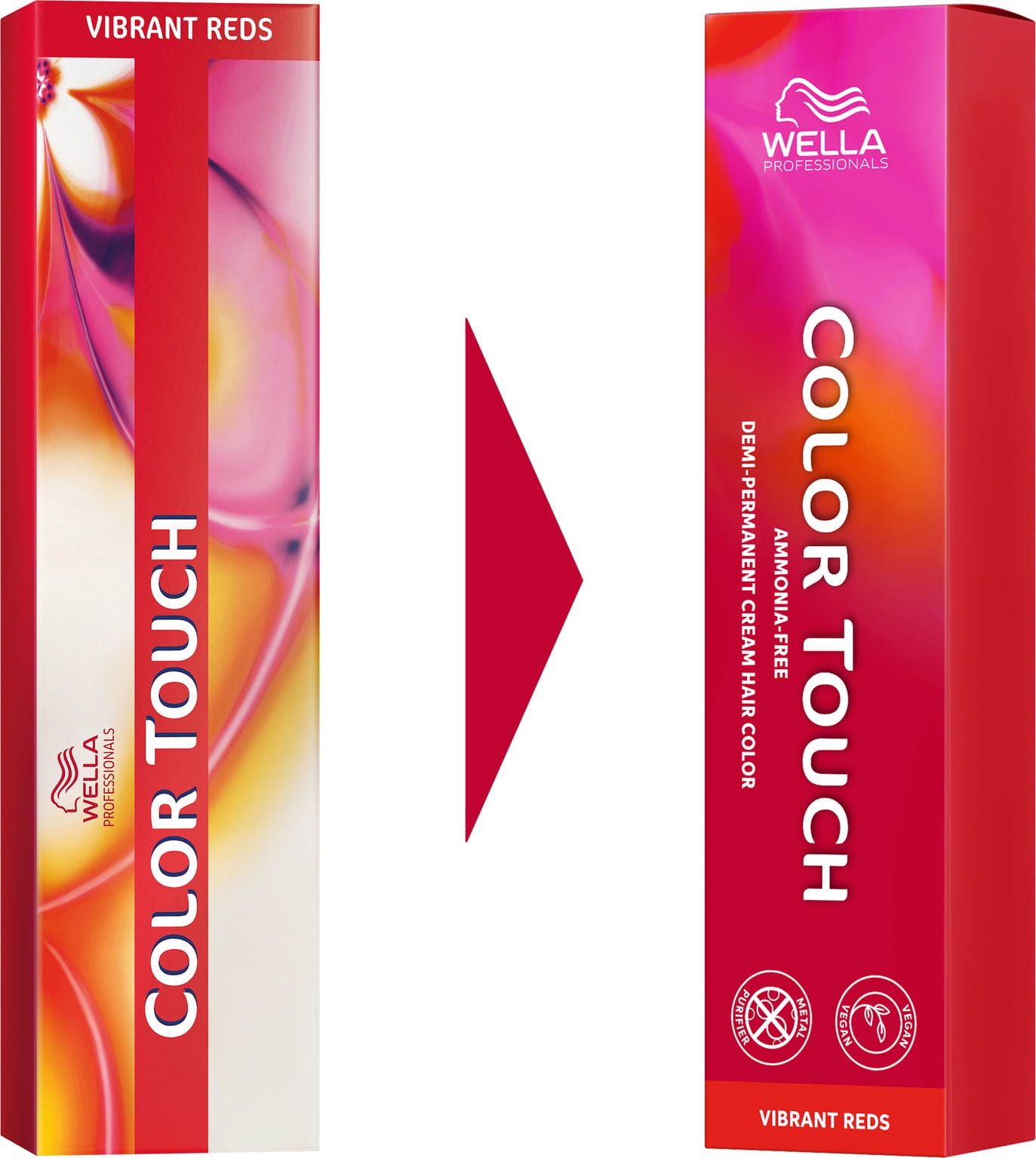 Color Touch Vibrant Reds são tonalidades intensivas demi-permanentes com a revolucionária Tecnologia Metal Purifier. Deixa-te inspirar pelos mágicos tons vermelhos com uma intensidade de cor radiante e um brilho fantástico. O resultado impressionante dura até 28 lavagens.