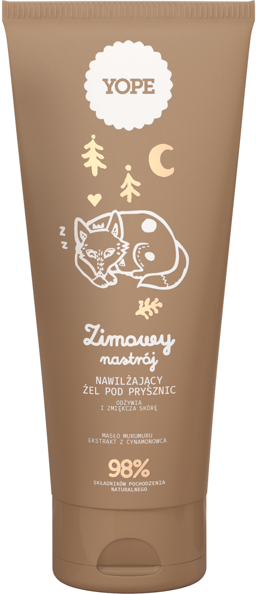 Desfrute do aroma quente e invernal do gel de duche Winter Mood da YOPE, enquanto os ingredientes nutritivos como a manteiga de murumuru e os extractos de madeira de cedro e canela são particularmente suaves para a pele.